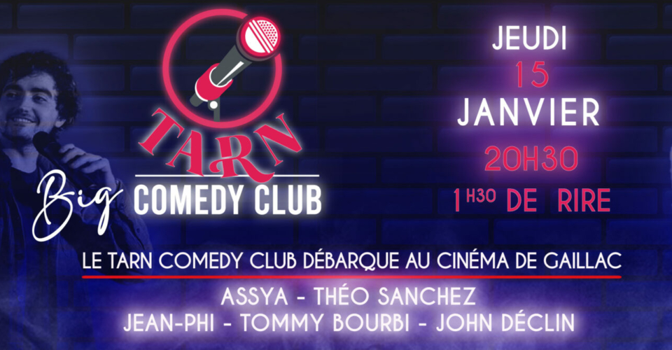 TARN BIG COMEDY CLUB – SOIRÉE HUMOUR À GAILLAC !Le Tarn Comedy Club débarque au Cinéma de Gaillac pour une soirée exceptionnelle placée sous le signe du rire ! Jeudi 15 janvier20h301h30 de rire…